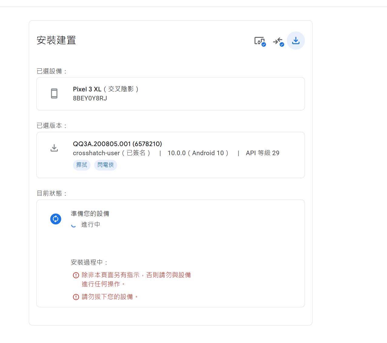 选择Pixel3对应镜像,选择Android 9,用于将android11 刷回 android 9。