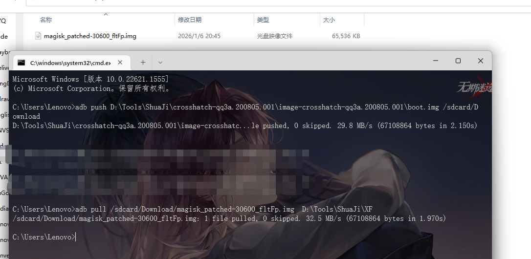 完成后利用adb命令将修复好的boot.img再拉回到自己的电脑上(任意目录)
