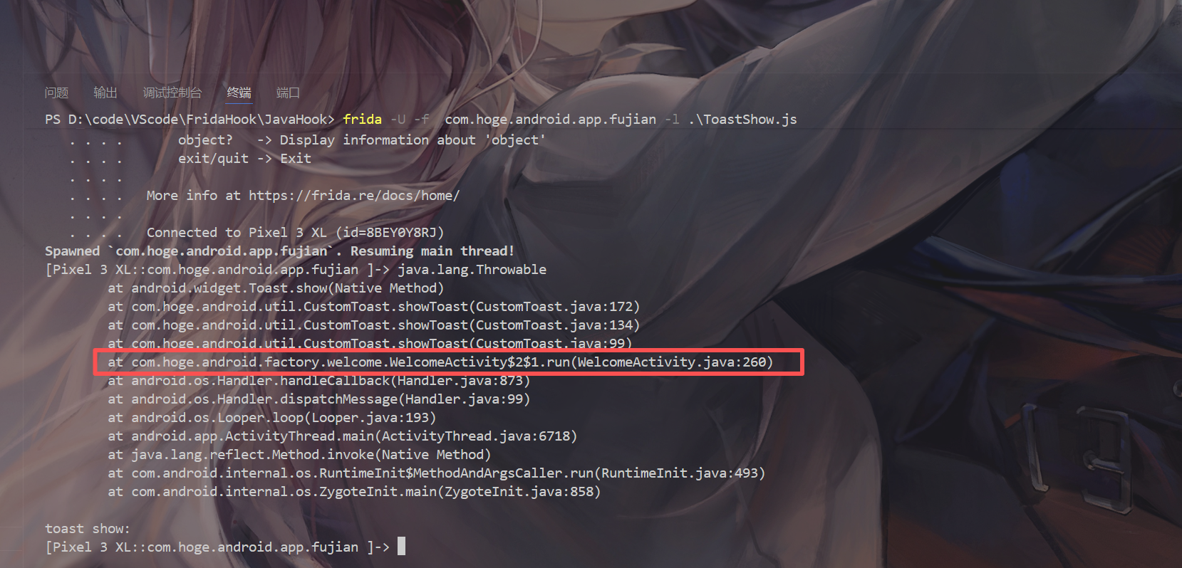 Java.use("java.lang.Throwable").$new(): 创建一个新的Throwable对象,它会捕获当前的调用栈Java.use("android.util.Log").getStackTraceString(): 使用Android的Log类将调用栈转换为字符串格式console.log(): 将调用栈信息输出到Frida控制台