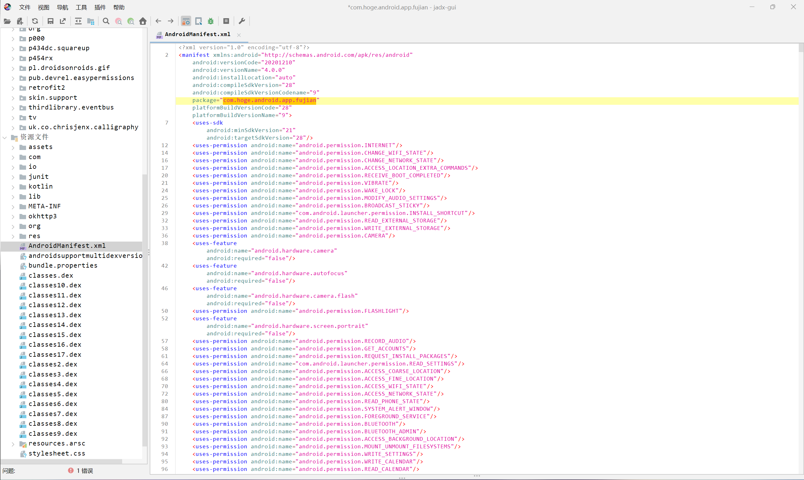 查看包名 com.hoge.android.app.fujian