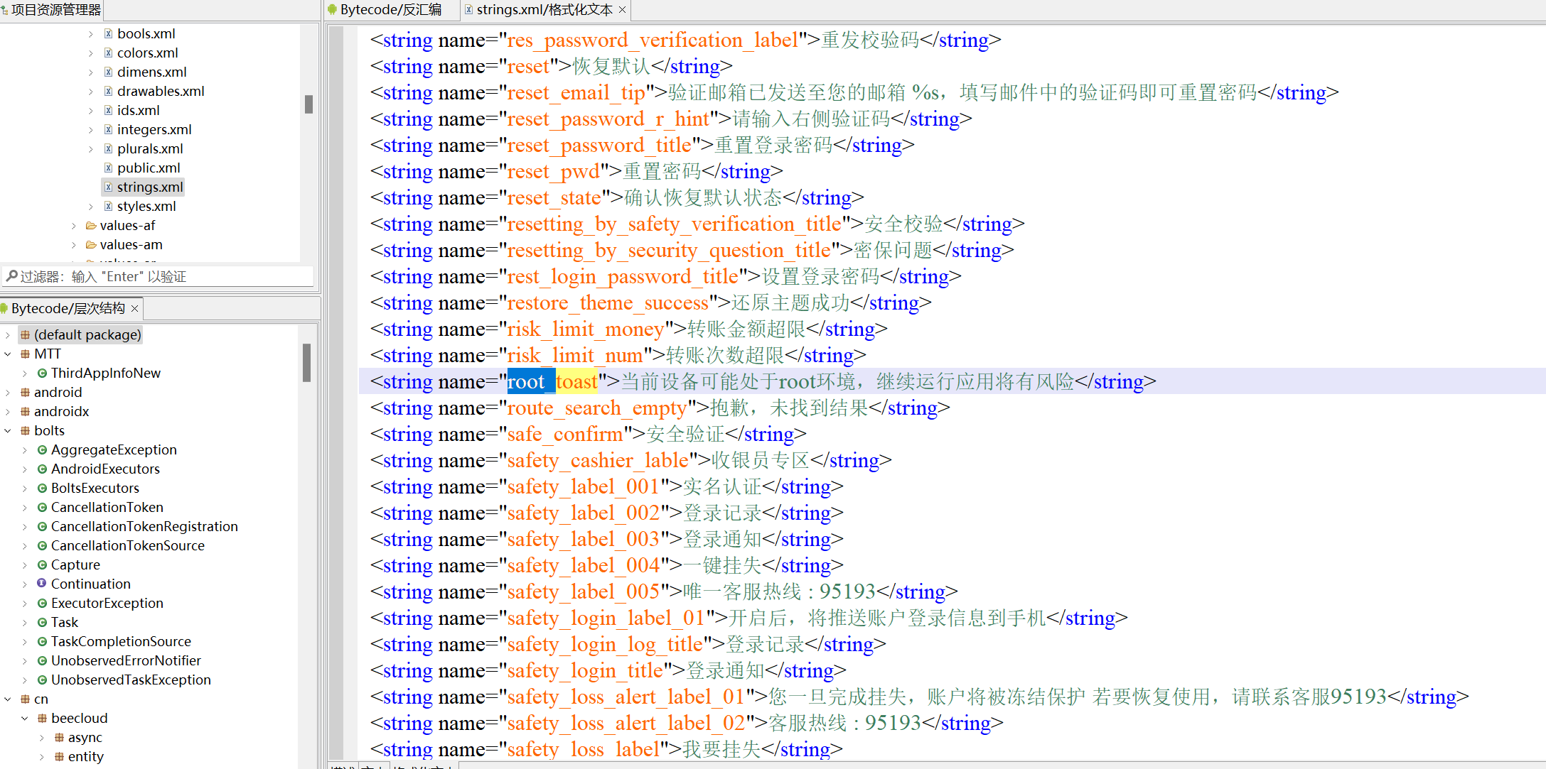 利用jeb反编译查看到值Resources→values→strings.xml