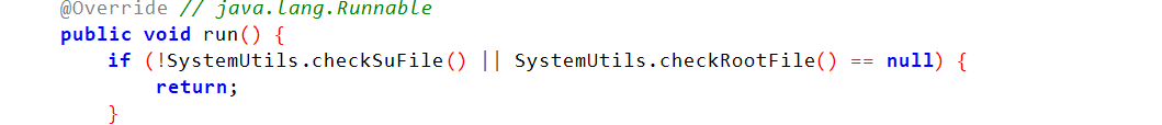 当SystemUtils.checkSuFile()返回真且不返回NULL就可以