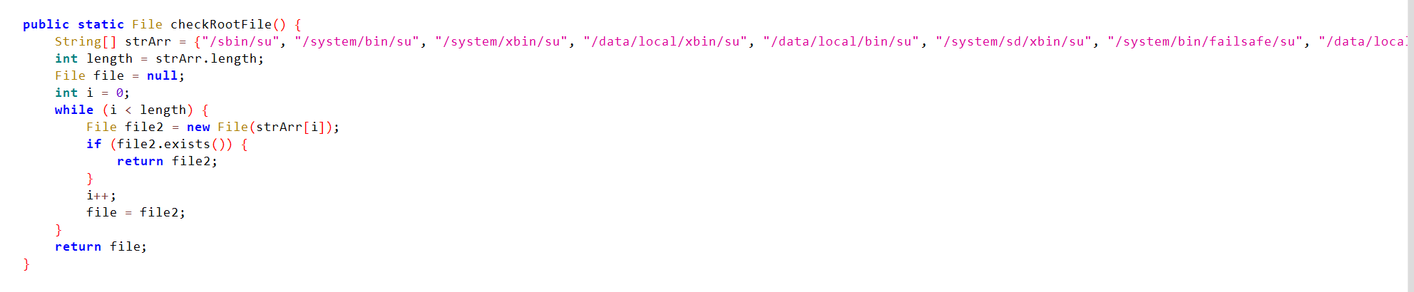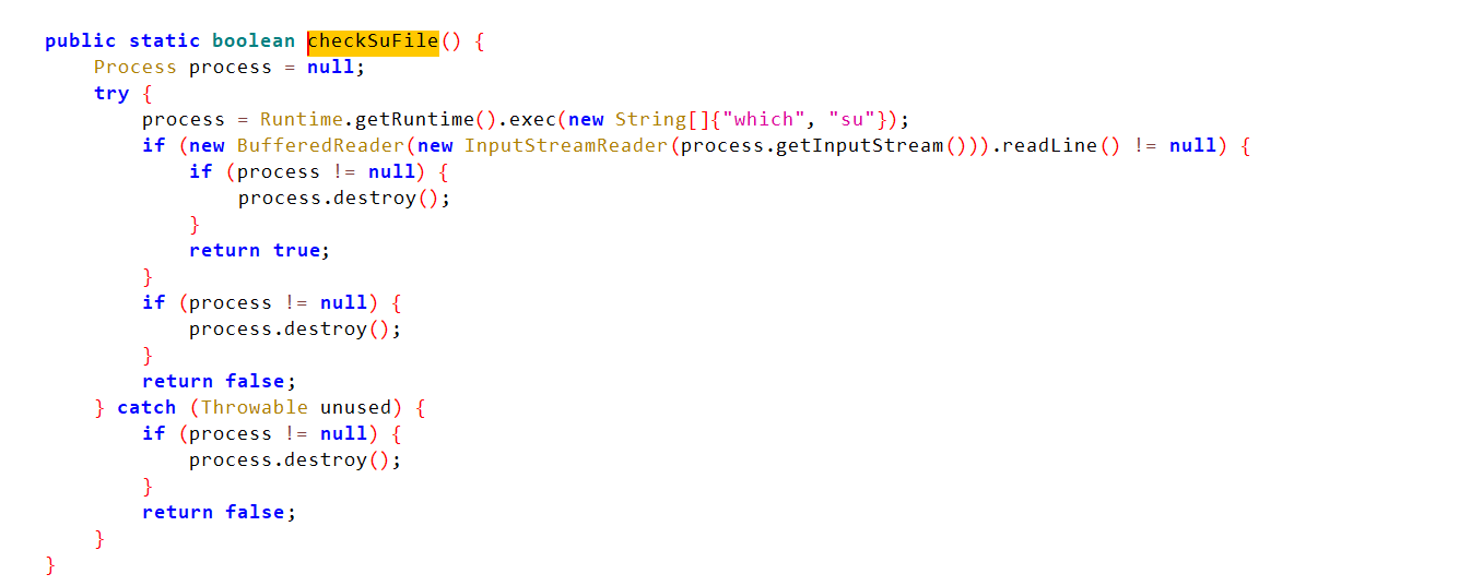 - 返回false可以让应用认为设备未root,绕过root检测