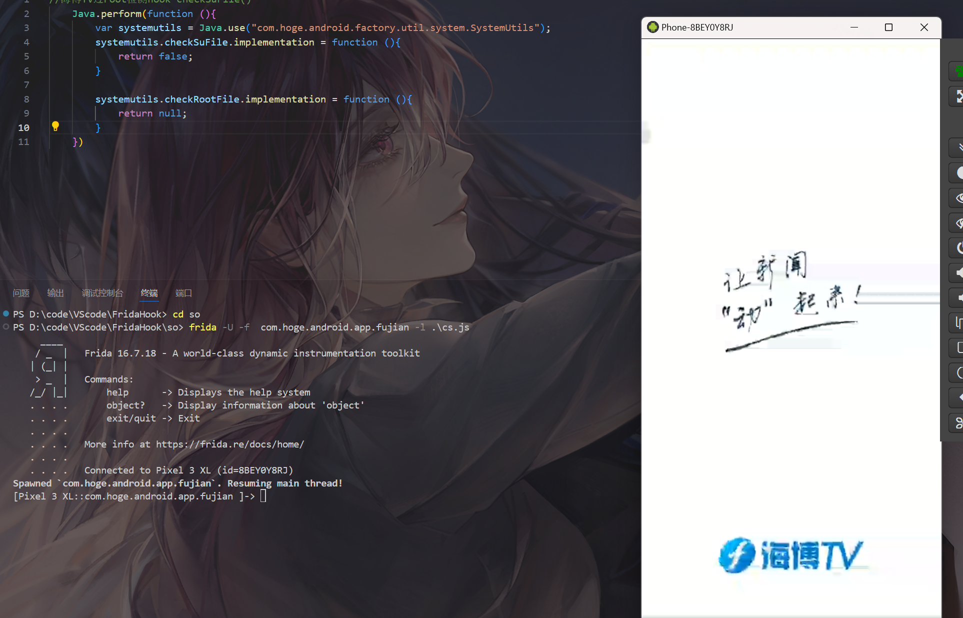 尝试注入frida -U -f com.hoge.android.app.fujian -l .\ToastShow.js