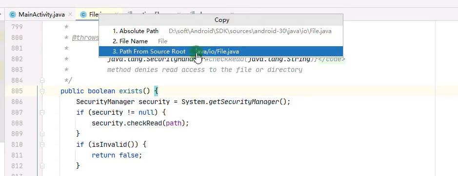 要想着知道exists()方法属于哪个类,我们可以直接通过编写代码查看路径