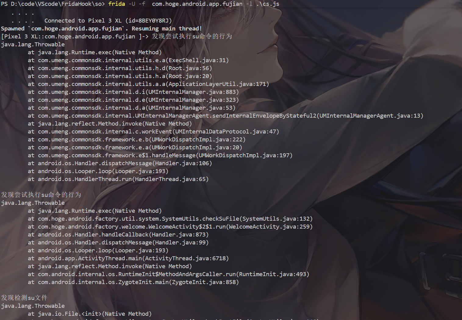 这个Frida脚本主要用于监控和检测Android应用中与root权限检测相关的操作,特别是对su文件的检查和使用su命令的行为。与直接绕过检测的脚本不同,这个脚本采用了被动监控的方式,只记录检测行为而不阻止它们。